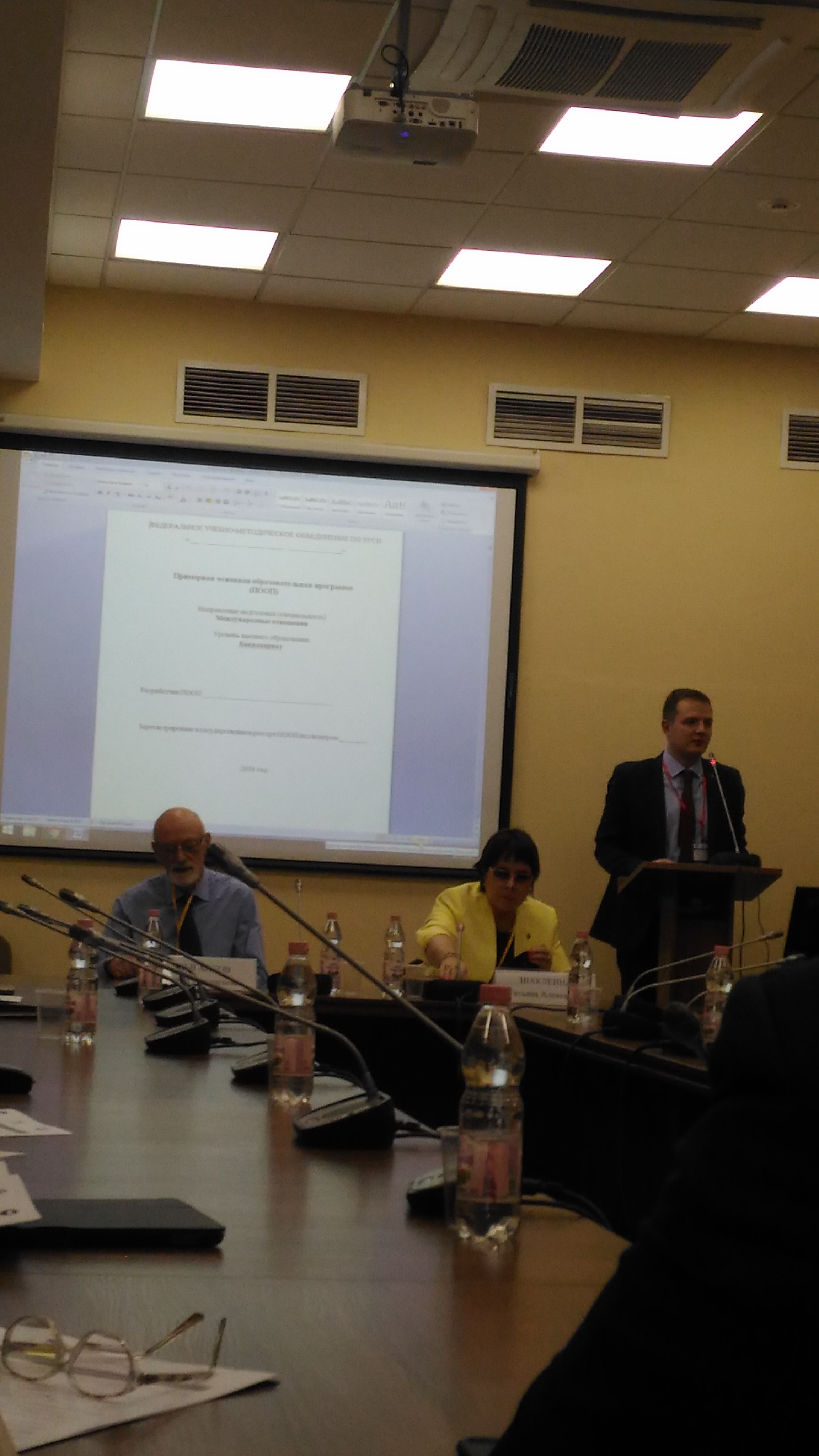 В заседании учебно-методической секции «Международные отношения» обсуждался проект ПООП по направлению «Международные отношения» ГФГОС 3++, выступали председатели секции Шаклеина Т.А., заведующая кафедрой прикладного анализа международных проблем МГИМО МИД России, профессор, д.полит.н. («Российско-американские отношения: проблемные узлы и перспективы») и Цыганков П.А., профессор факультета политологи и М ГУ им. М.В.ЛОМОНОСОВП, д.ф.н. («Социологические термины и подходы в анализе МО»).